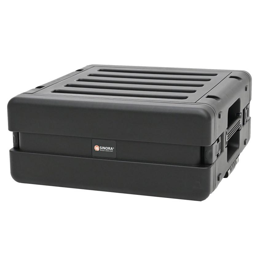 Els racks de 19 polzades SINORA es caracteritzen per la seva gran solidesa i lleugeresa gràcies al seu disseny X innovador. Aquests racks de carcassa rígida (hardshell) injectada ofereixen un ajust precís, una seguretat òptima durant el transport i una manipulació fàcil dels equips de 19 polzades. Equipats amb guies d’acer a la part davantera i posterior, i amb dues nanses de transport robustes, estan optimitzats per al transport segur.